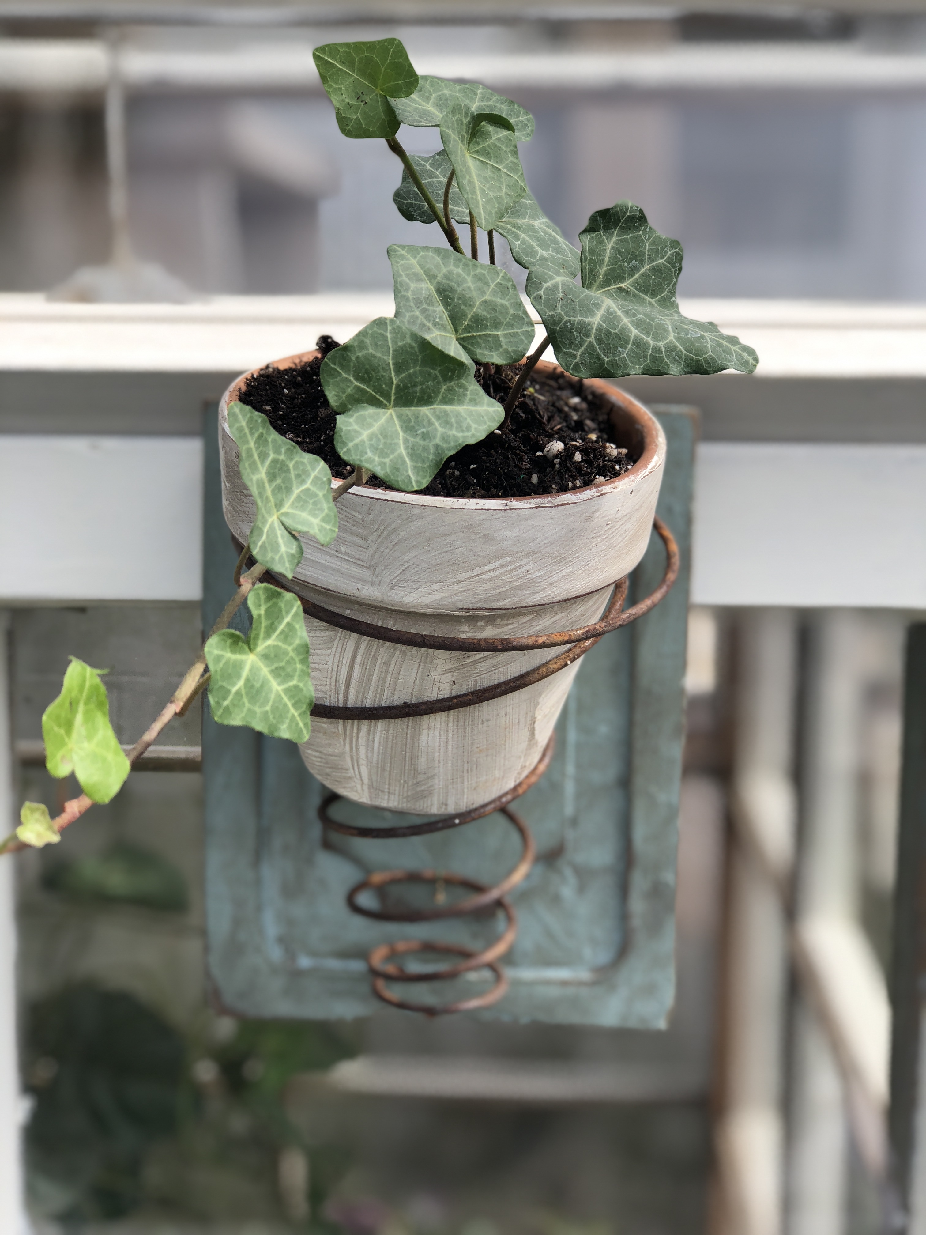 All you need is a couple of old chair springs, a bit of old wire, a base to secure the springs to, 2 small terra cotta pots and some ASCP. (Annie Sloan Chalk Paint).